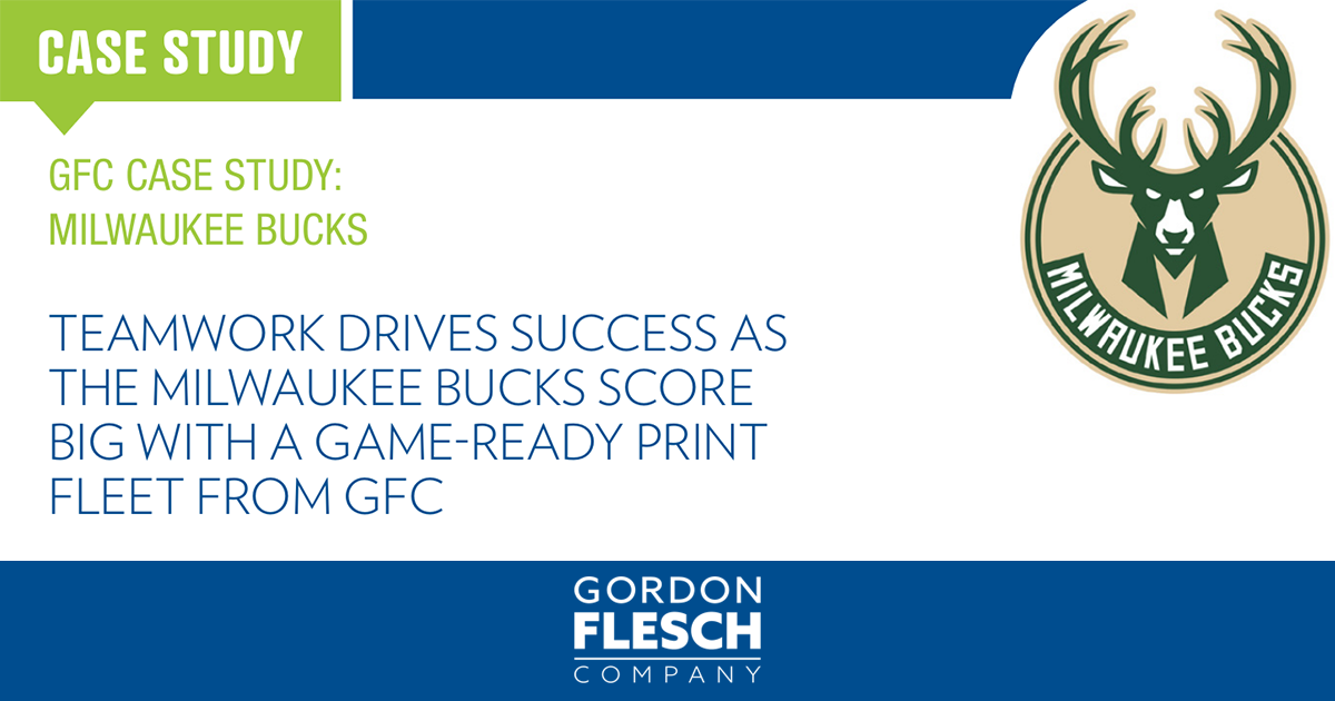 Gordon Flesch Company (GFC) listened to the needs of the Milwaukee Bucks staff and guided them through the print assessment process. This included the use of tools to assess printed page counts. The data generated from the assessment helped GFC design a print fleet equipped for both the Bucks’ everyday and game day needs. The recommended solution included locker room printers to support coaching workflows, office printers with finishing attachments (e.g. stapling, hole punching) and just-in-time toner replenishment for the entire print fleet, including a wide-format device used to print specialty signage for arena directions, announcements and special events.